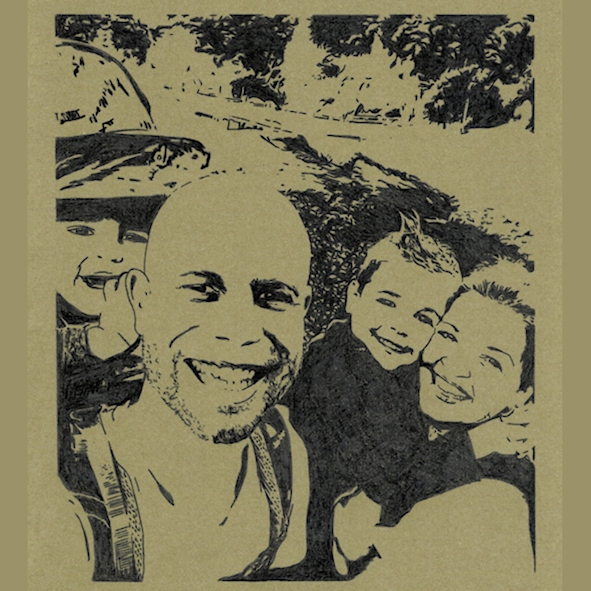 Denk je aan een goudbruine achtergrond waarbij het portret door de zwarte potloodkleuring een eigen karakter krijgt?