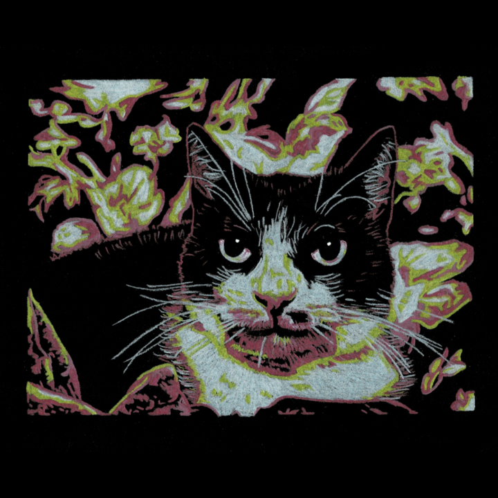 Denk je aan een zwarte basis met 2 door jou gekozen kleuren waarbij een kleurrijk(er) portret ontstaat?